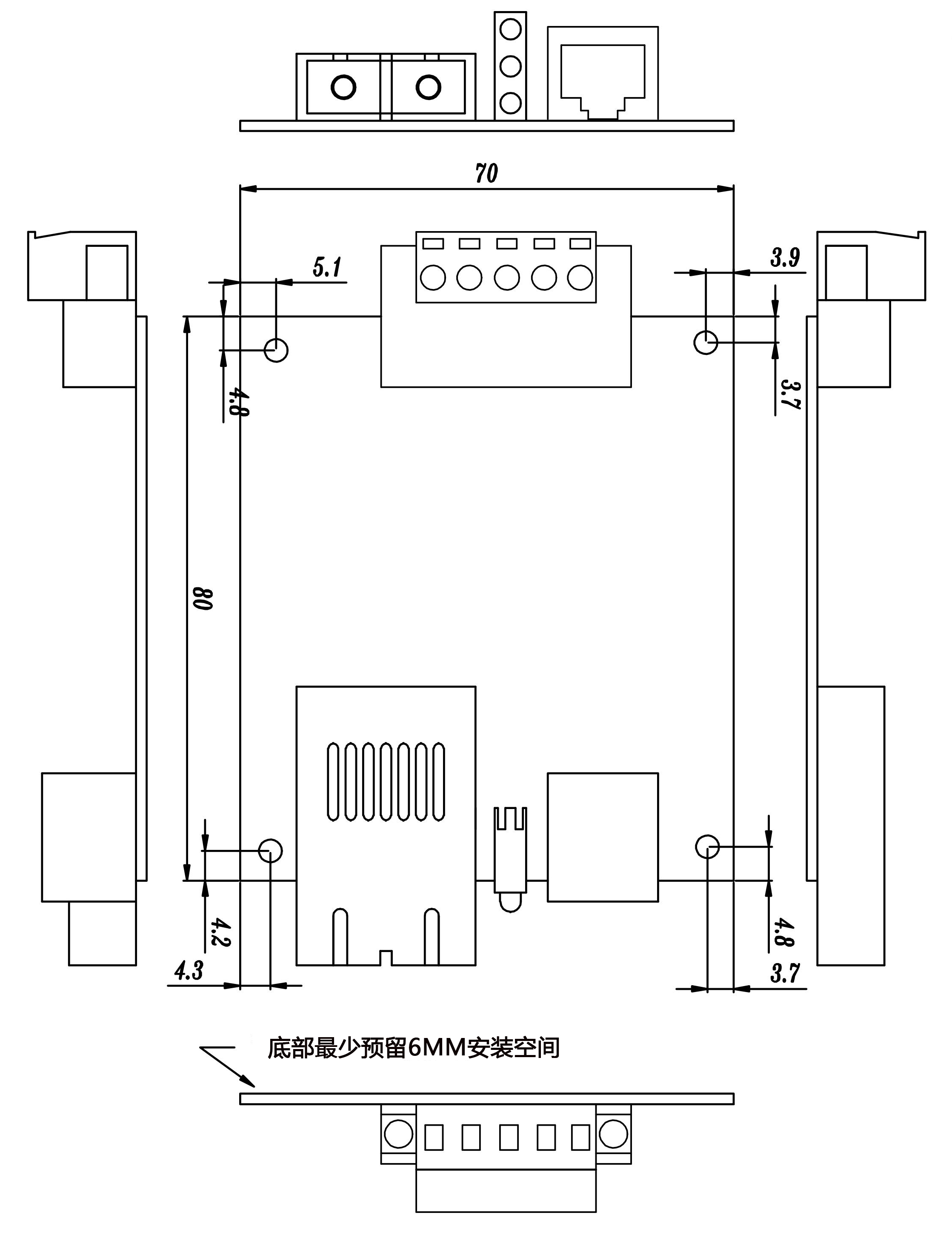 外形尺寸:80×70×18(mm)(不含连接器尺寸)